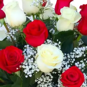 32,00 € - 56,00 €Rango de precios: desde 32,00 € hasta 56,00 €Ramo de rosas rojas y blancas