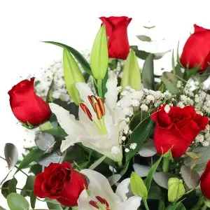 27,00 € - 114,00 €Rango de precios: desde 27,00 € hasta 114,00 €Ramo rosas rojas y lilium blanco