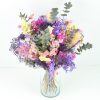 El ramo de flores Nalba, es un arreglo floral de flores variadas secas en tonos rosa, morado, fucsia, blanco y crema. (Las imágenes son orientativas, algunas de las flores pueden variar de aquellas que aparecen en la imagen según su temporada y disponibilidad. Nuestros floristas profesionales pueden sustituirlos por otra alternativa similar en estilo, calidad y valor.)