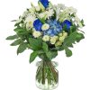 El ramo Azure tiene una mezcla preciosa de colores blancos con un toque azul. Este contraste de colores es una opción elegante que llamara la atención por esos tonos azules celestes tan exóticos.