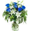 | Tallos | 4 rosas azules + 2 lilium blanco, 6 rosas azules + 3 lilium blanco (imagen), 12 rosas azules + 4 lilium blanco, 18 rosas azules + 4 lilium blanco |