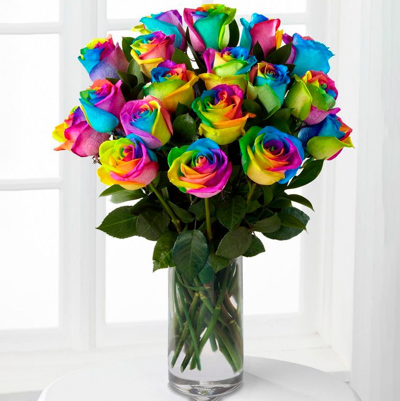 Rosas arcoíris: comprar ramos de tallo largo para enviar