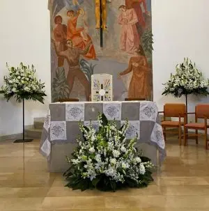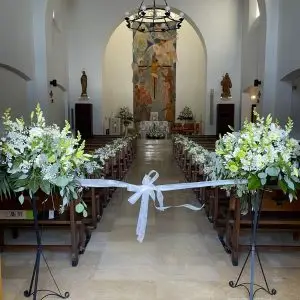Flores para bodas religiosas: altar, bancos, entrada y centros florales