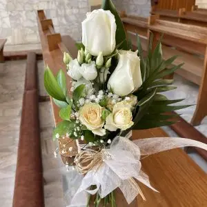 Este adorno consiste en un ramo floral encarado para decorar las bancas de tu iglesia. El ramo esta compuesto con una variedad de diferentes clases…